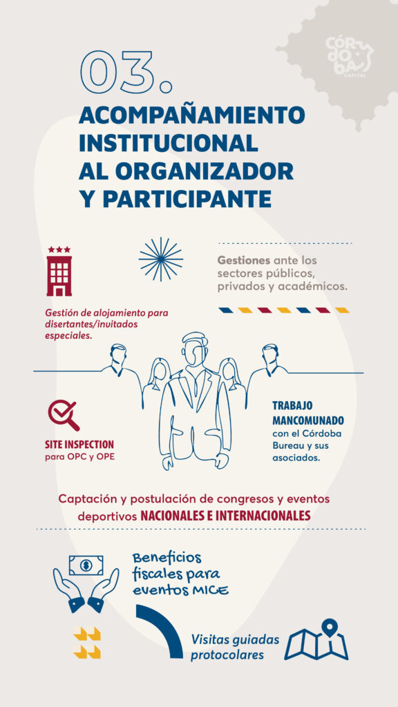 Desde la Subsecretaría de Turismo te acompañamos de manera integral en cada etapa de la organización de tu evento, brindando asesoramiento, gestión y articulación estratégica para garantizar una experiencia exitosa en Córdoba Capital.